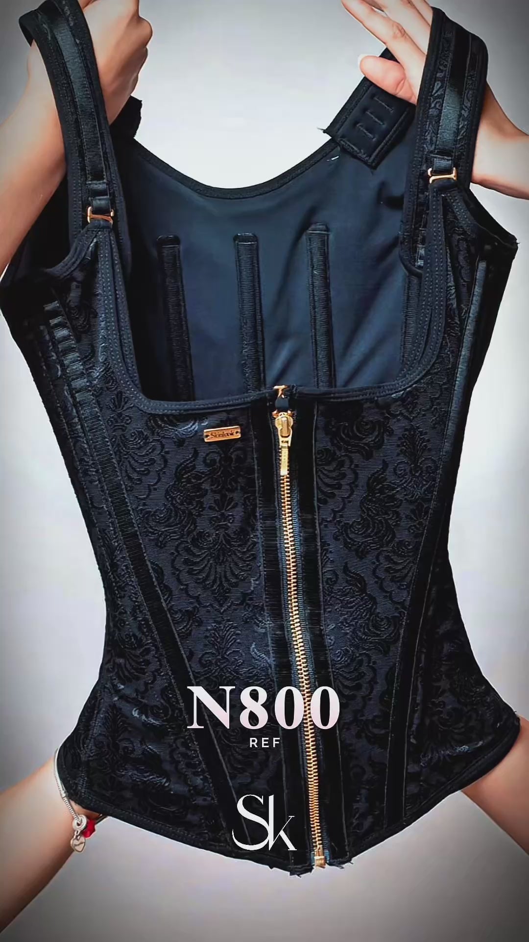 La Ref. 800 de SkinLook es una cinturilla moldeadora tipo corset, elaborada en blonda grabada de lujo que combina belleza y poder de compresión. Con espalda alta y tiras ajustables, brinda control total en abdomen y torso medio, estilizando tu silueta al instante.